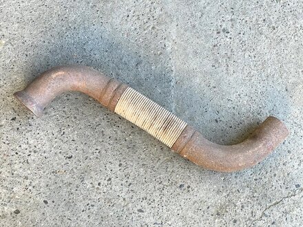 This flexible accordion section of this pipe is prone to breaking with age. When it cracks, you will hear a change in your exhaust sound and will notice black soot staining where it is leaking. One end bolts on the rear of the turbo. You can use this section with a good accordian, but the lower section of your pipe must be good because you will need to do some cutting and welding to make it work. This is sold as is and IS NOT RETURNABLE.