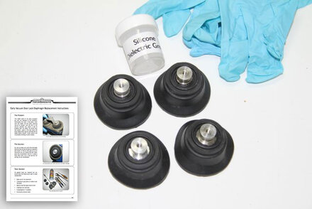 The KIt also comes with a small container of dielectric silicone grease. You can use that grease to help soften and preserve some of your old diaphragms. Gloves are included as well as complete instructions for changing out the rubber parts. NOTE: Instructions for removing the door panels on the various models are not included. See my other manuals for information on door panel removal.