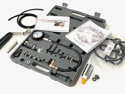 This kit of special tools and hardware will let you do this critical doctor's exam yourself. And you will save lots of $$$ - maybe even tons. This exam would cost you $300 to $400 at a shop. You will also save $40 over buying these items individually, and you could save thousands when this kit prevents you from purchasing the wrong car! The horror stories we hear regularly about bad diesel purchases are preventable. PLEASE NOTE: colors may vary: The compression tester now comes in a grey case and the valve wrenches are made using USA Wright black oxide combination wrenches