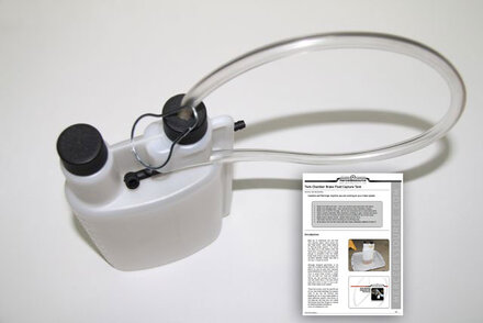 Born out of frustration this twin chamber plastic bottle has solved two of Kent's biggest head aches when brake bleeding or flushing brake systems. This bottle will allow you to see exactly when the fluid is running clear and it is large enough to gauge and complete a full four wheel brake flush without having to empty the container between wheels. Now that is the way it should be done! If you use this capture bottle along with Kent's DIY pressure bleeder you can cut your brake flush time in half.... and changing your car's brake fluid should be done every two years!