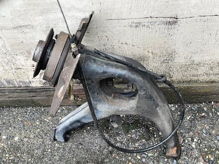 Good usable trailing arm as shown. No rust through. This was removed from a 1982 W123 300TD, so if you install it in another chassis, you will have to change the emergency brake cable. PLEASE NOTE. All bolt attachments are in good condition with no broken or stripped bolts, and the hub bearing is in good condition. This one is above average!