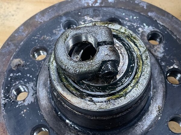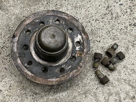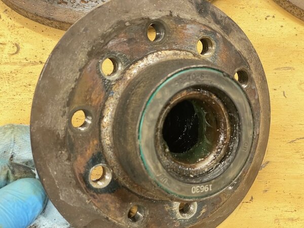 This one is excellent. It appears to have been worked on / replaced. The bearings are very smooth, fully brease and the rear seal does not look original. Even the cap is not all beat up. This is your best option if the lug bolt threads are damaged or stripped out. Good used condition.